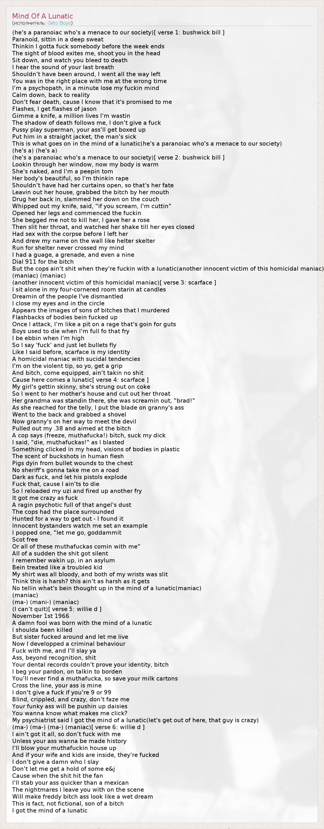 А как ты думаешь, о чем песня "Mind Of A Lunatic" ?