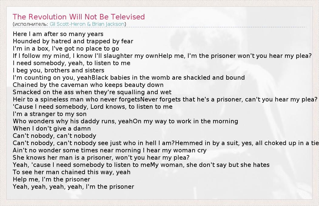А как ты думаешь, о чем песня "The Revolution Will Not Be Televised" ?