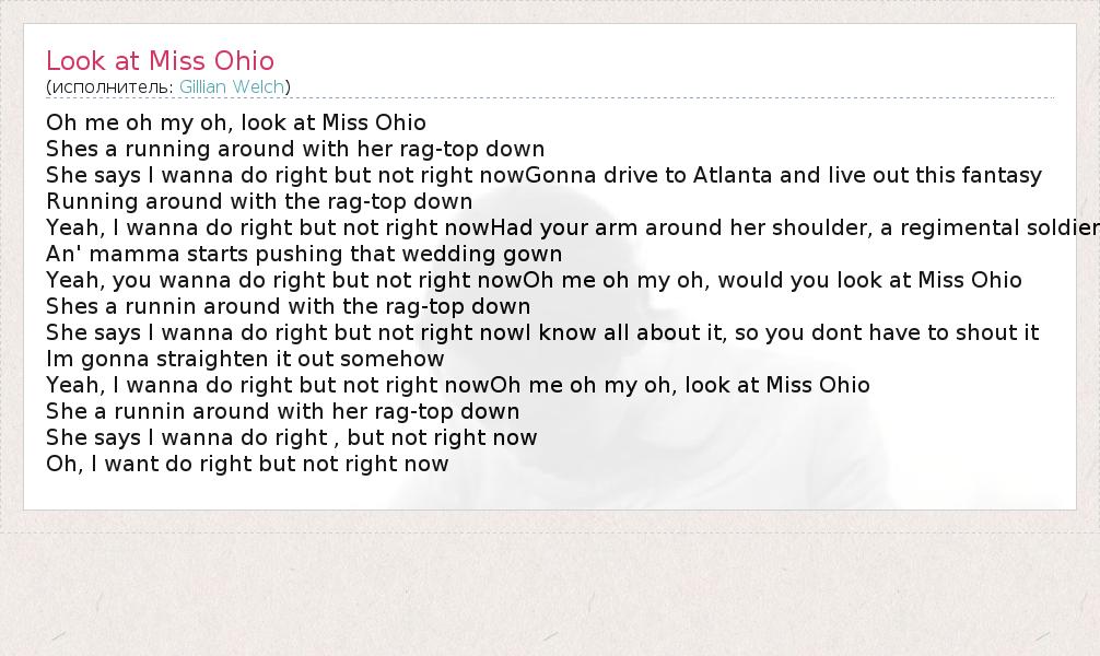А как ты думаешь, о чем песня "Look at Miss Ohio" ?