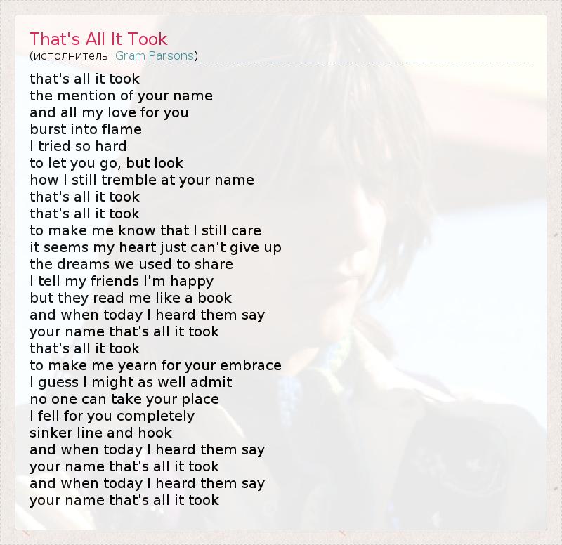 А как ты думаешь, о чем песня "That's All It Took" ?