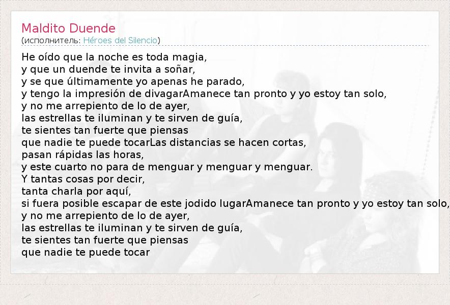 А как ты думаешь, о чем песня "Maldito Duende" ?