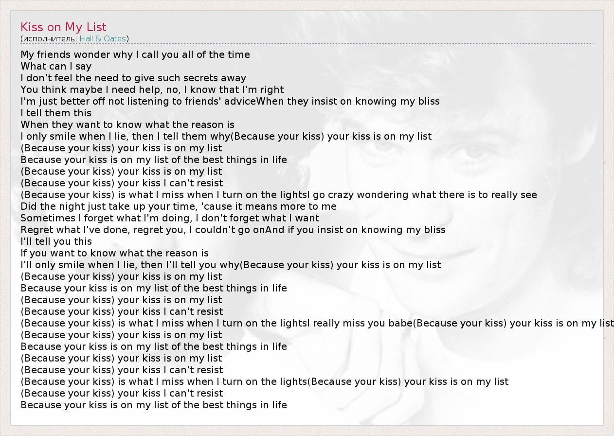 А как ты думаешь, о чем песня "Kiss on My List" ?