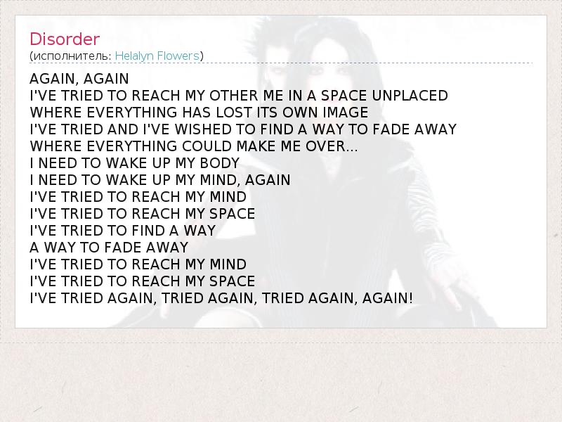 I'VE TRIED AND I'VE WISHED TO FIND A WAY TO FADE AWAY