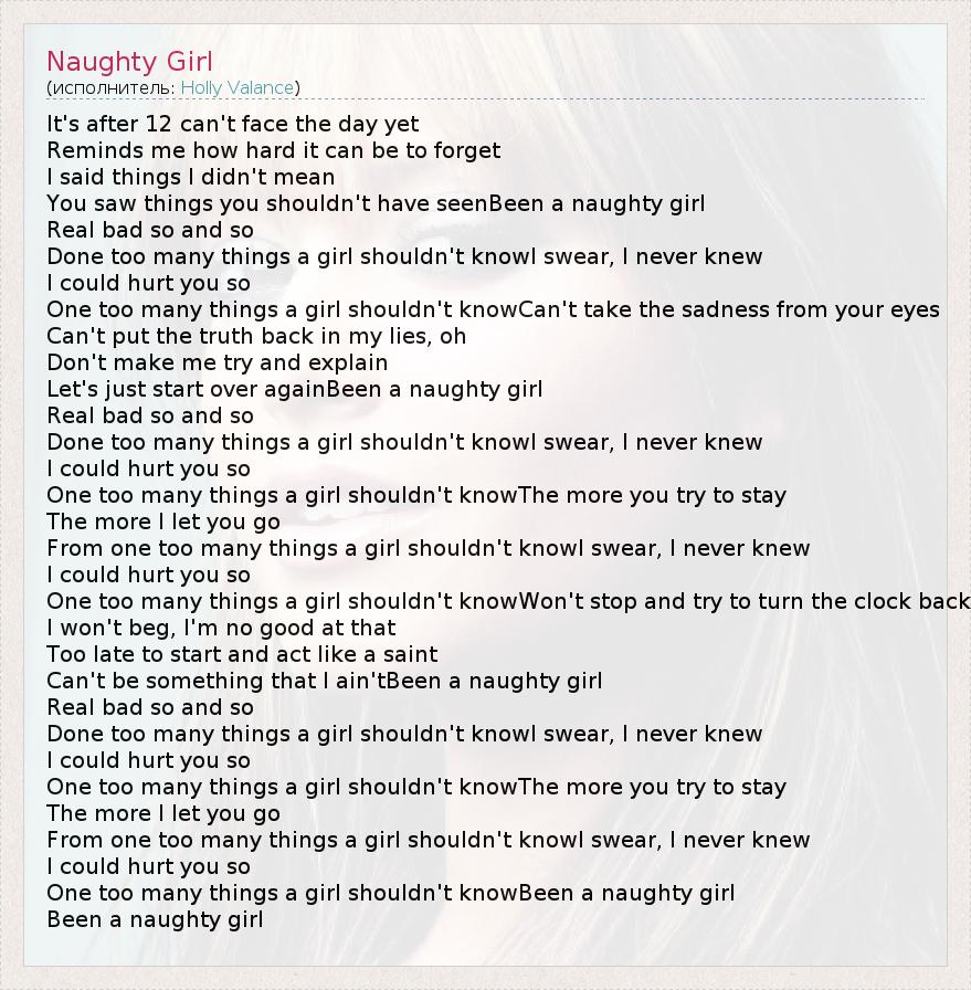 А как ты думаешь, о чем песня "Naughty Girl" ?