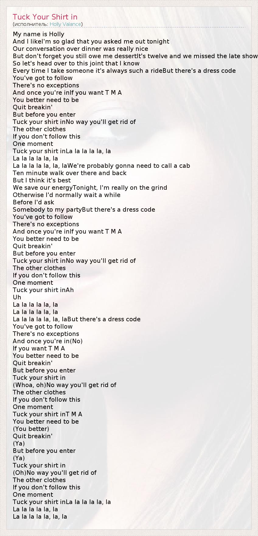 А как ты думаешь, о чем песня "Tuck Your Shirt in" ?