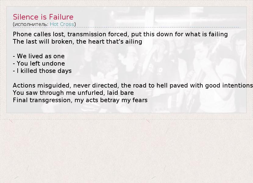 А как ты думаешь, о чем песня "Silence is Failure" ?
