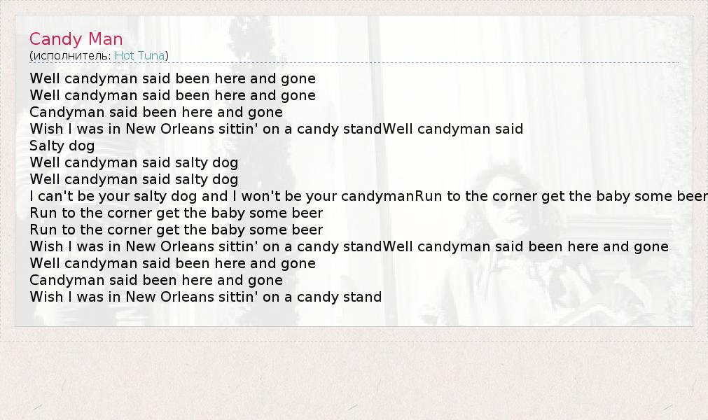 А как ты думаешь, о чем песня "Candy Man" ?