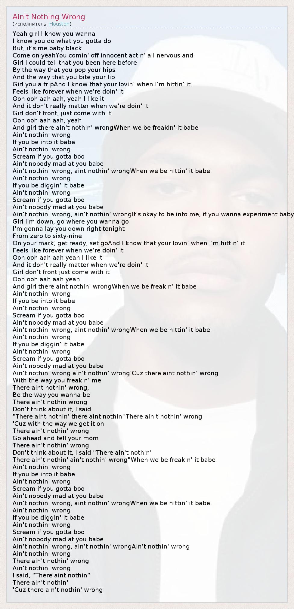 А как ты думаешь, о чем песня "Ain't Nothing Wrong" ?
