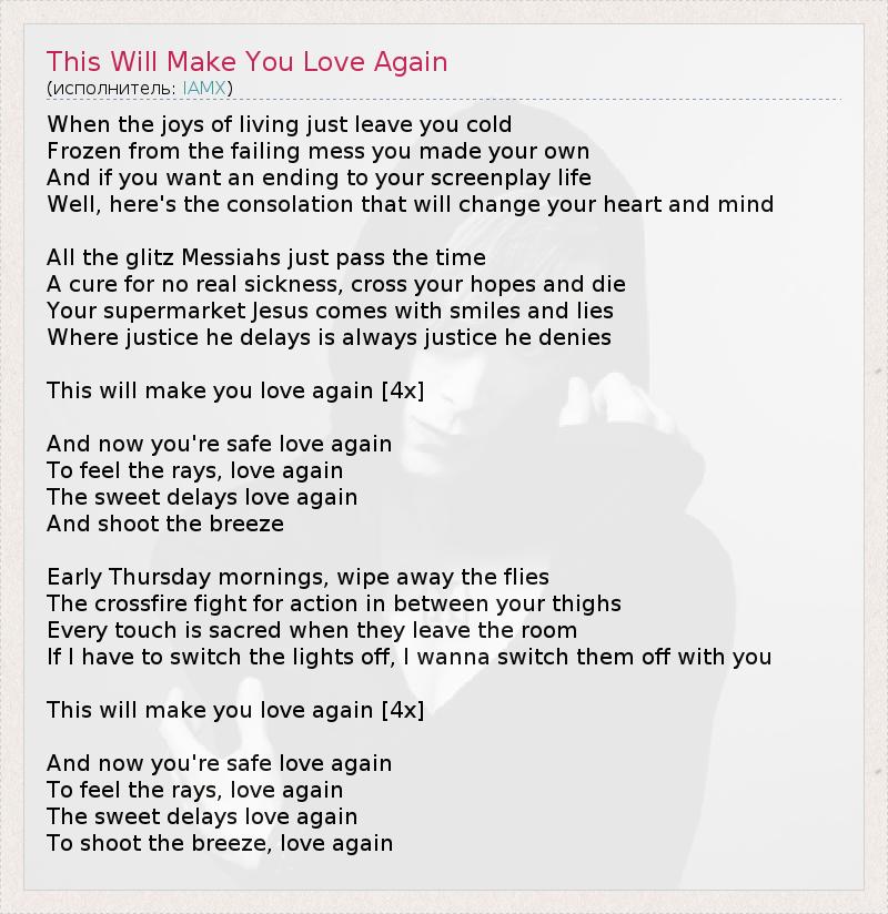 А как ты думаешь, о чем песня "This Will Make You Love Again" ?