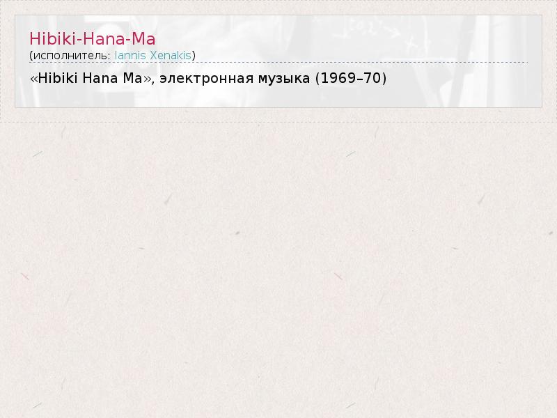 «Hibiki Hana Ma», электронная музыка (1969–70)