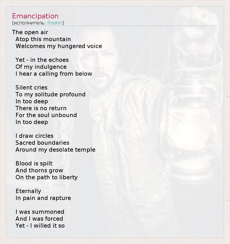 А как ты думаешь, о чем песня "Emancipation" ?