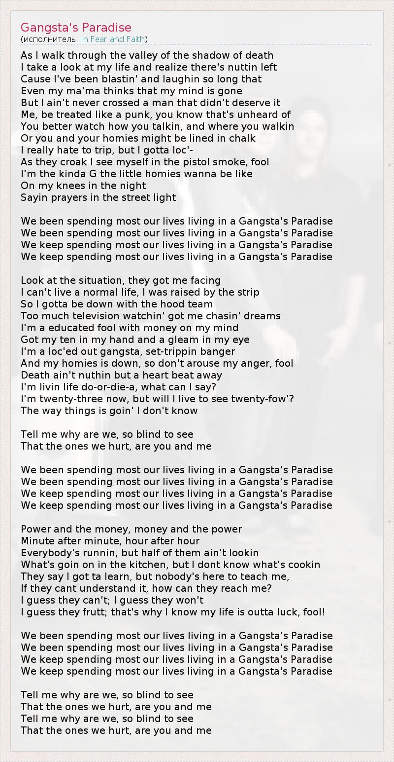 А как ты думаешь, о чем песня "Gangsta's Paradise" ?