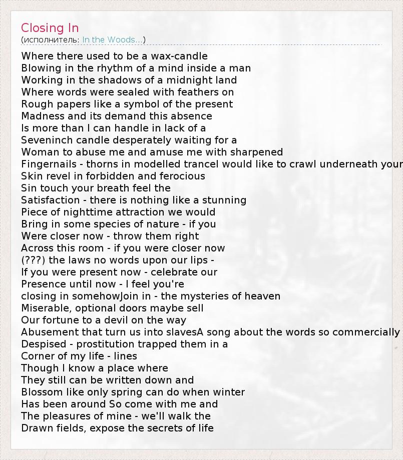 Это интересно:Формацию In the Woods… образовали музыканты дэт-дум-метал команды Green Сarnation после того, как их компанию покинул гитарист Черт. В отличие от предыдущей группы, музыканты начали с блэк-металла, но с каждым релизом удалялись от канонов этого жанра. В принципе, уже с самого начала было ясно, что "чистых" блэкушников из "жителей лесов" не получится, поскольку тексты у них были вовсе... продолжение