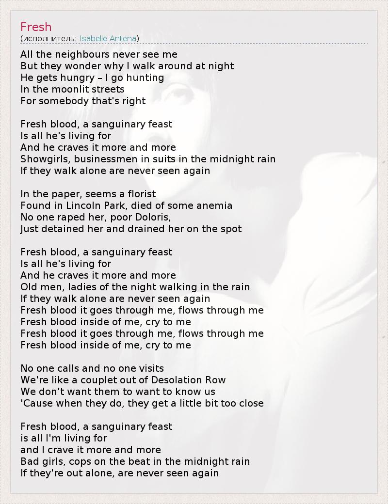 Fresh blood inside of me, cry to me