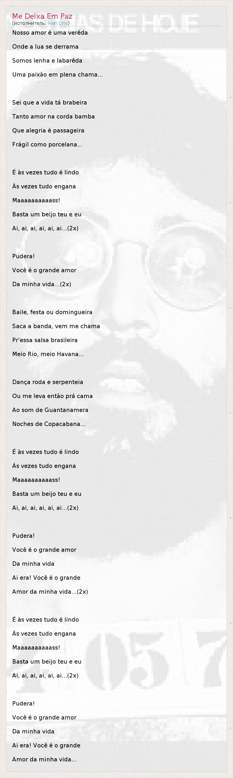 А как ты думаешь, о чем песня "Me Deixa Em Paz" ?