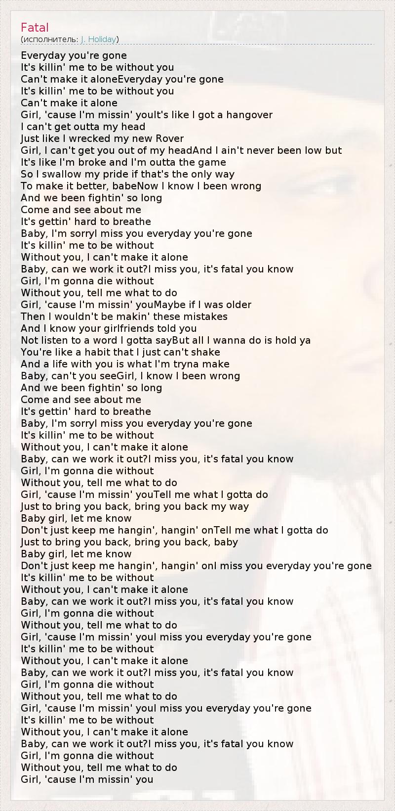 Girl, 'cause I'm missin' youI miss you everyday you're gone