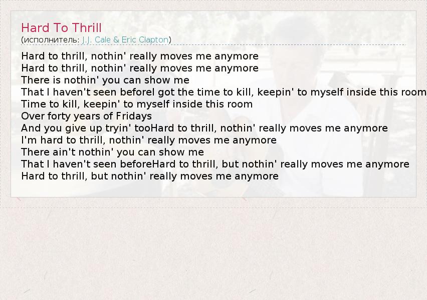 А как ты думаешь, о чем песня "Hard To Thrill" ?
