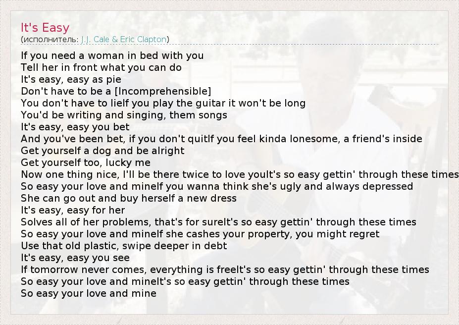 А как ты думаешь, о чем песня "It's Easy" ?