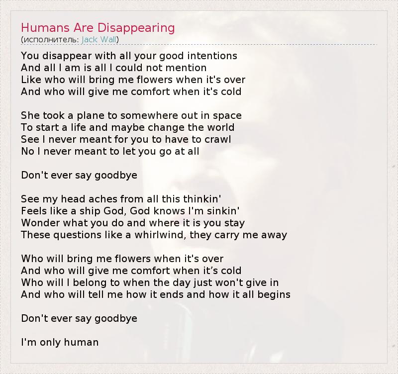 ГлавнаяИсполнителиJack WallHumans Are Disappearing