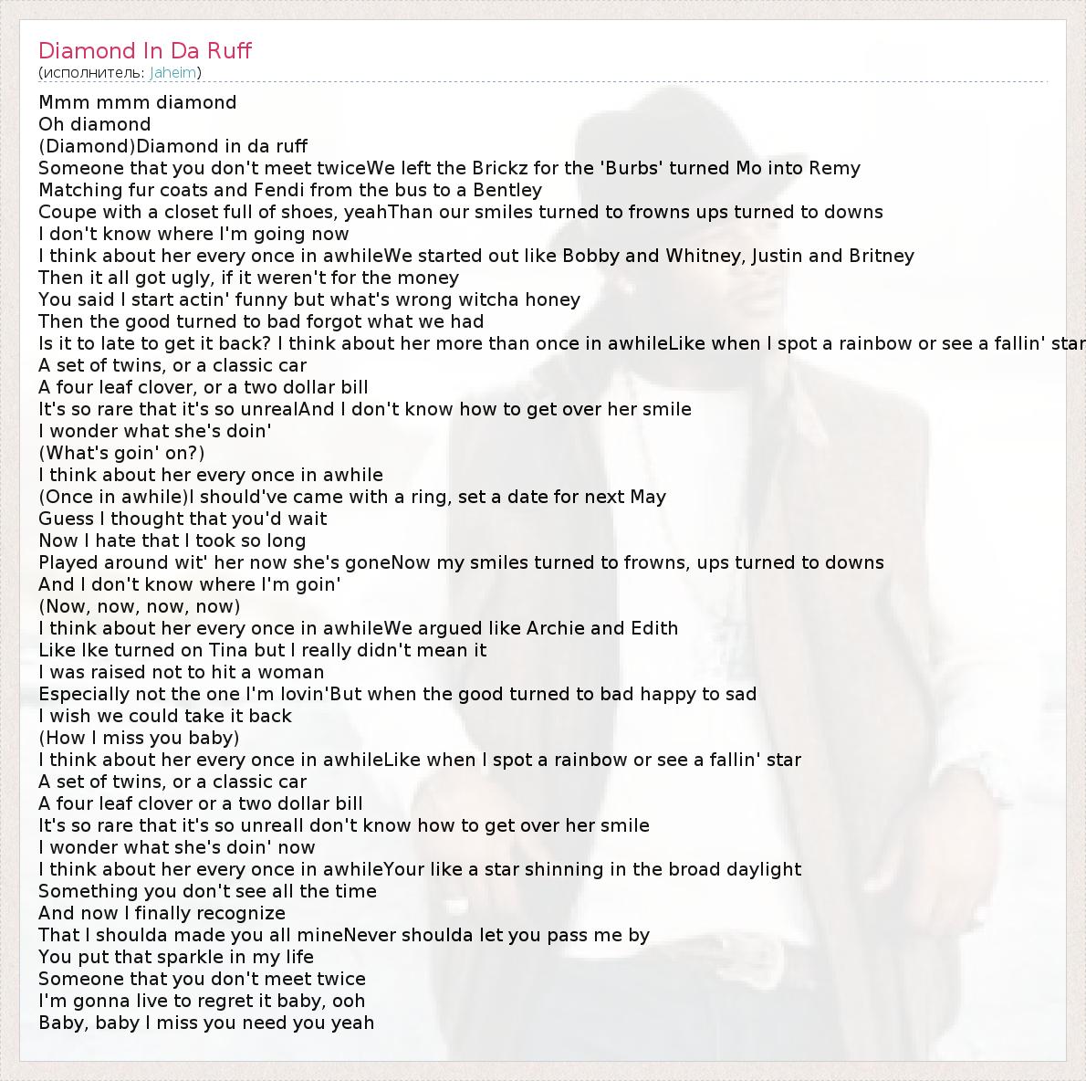 А как ты думаешь, о чем песня "Diamond In Da Ruff" ?