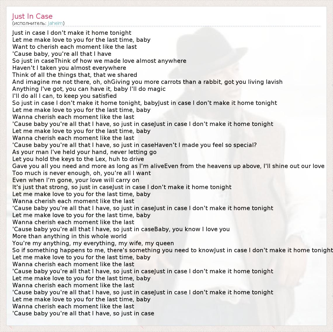 'Cause baby you're all that I have, so just in caseJust in case I don't make it home tonight