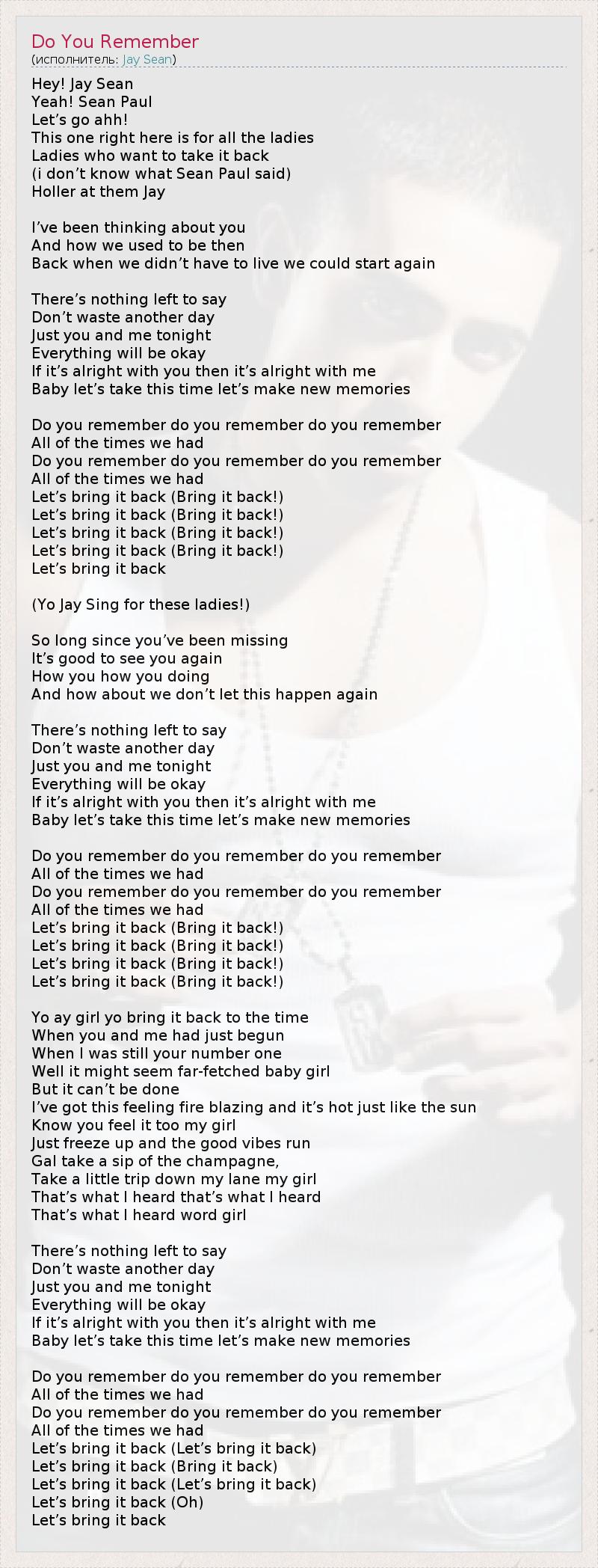 А как ты думаешь, о чем песня "Do You Remember" ?