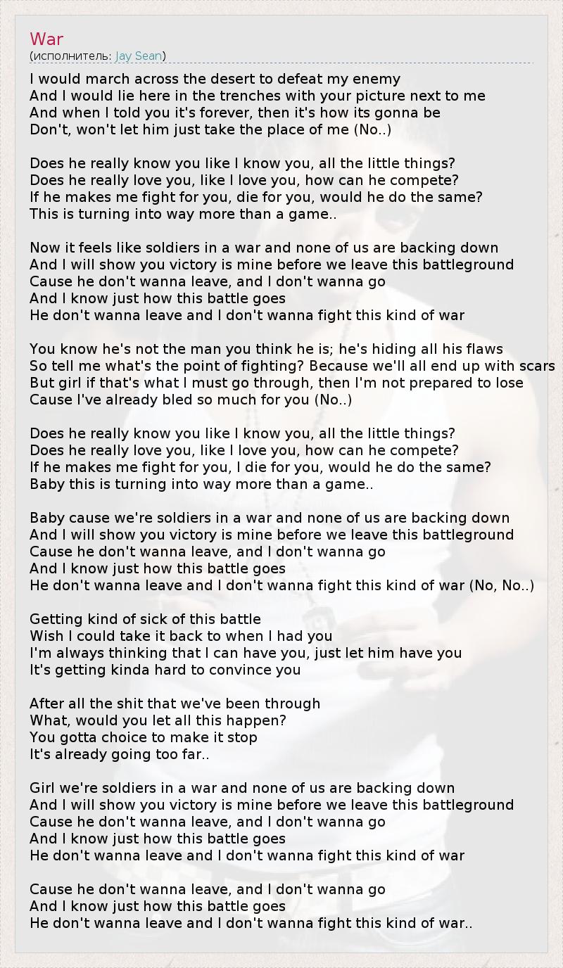 He don't wanna leave and I don't wanna fight this kind of war (No, No..)