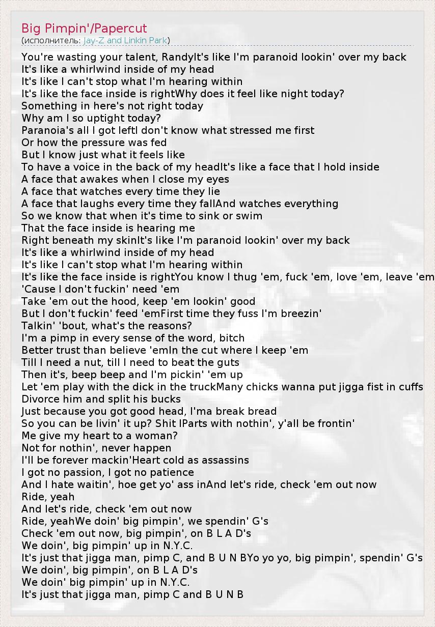 А как ты думаешь, о чем песня "Big Pimpin'/Papercut" ?