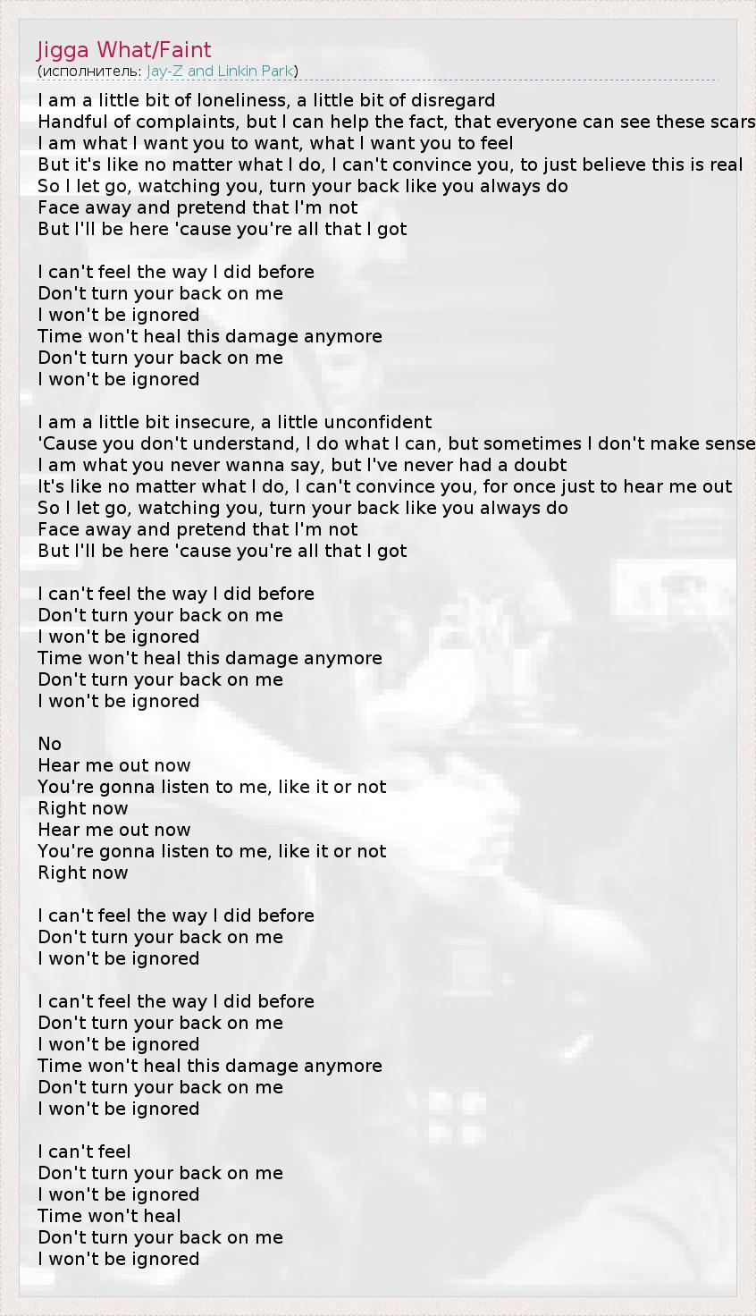А как ты думаешь, о чем песня "Jigga What/Faint" ?