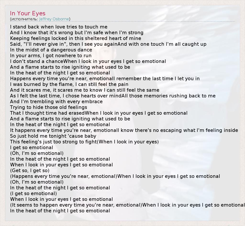 That I thought time had erasedWhen I look in your eyes I get so emotional