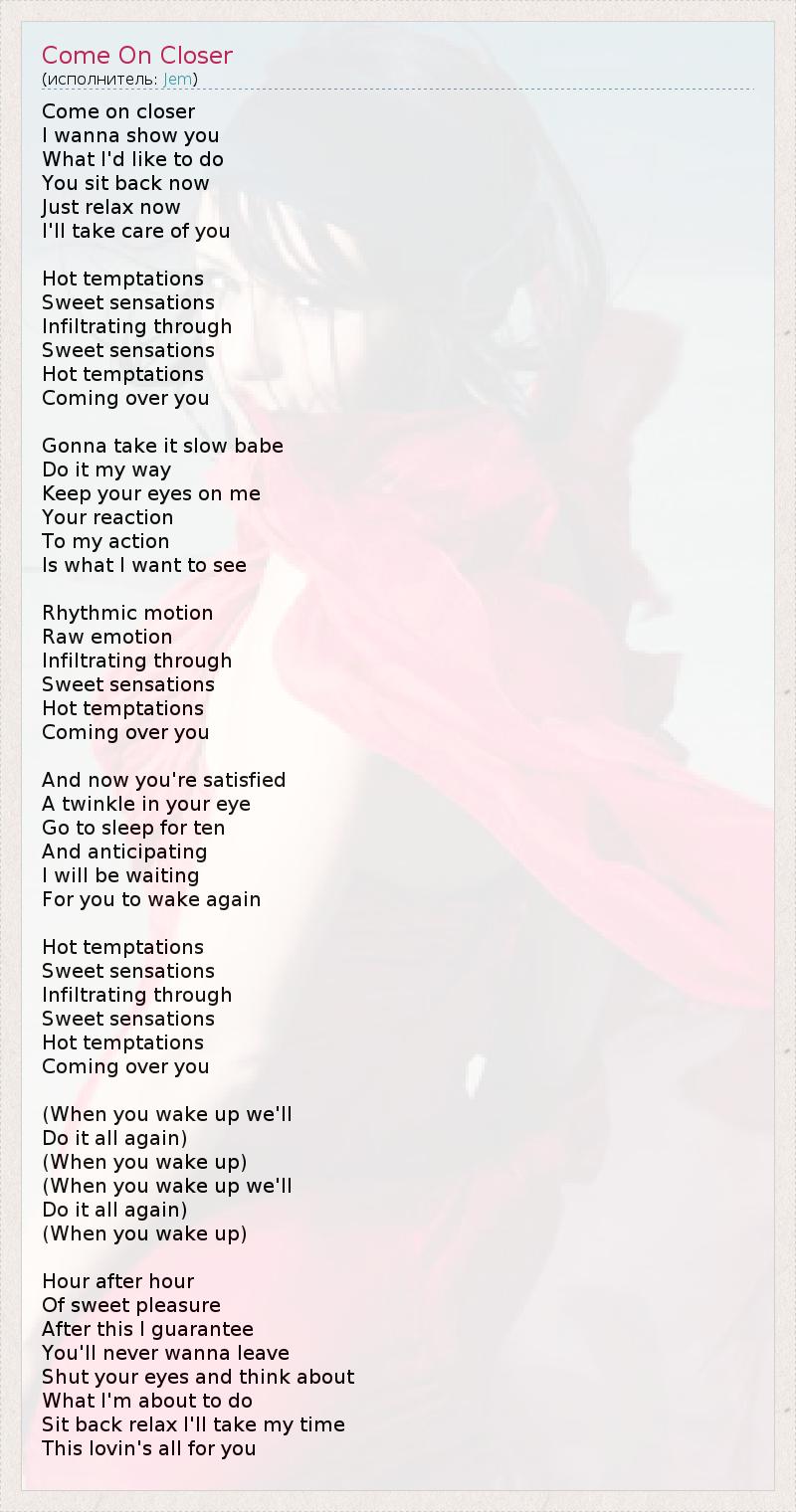 А как ты думаешь, о чем песня "Come On Closer" ?