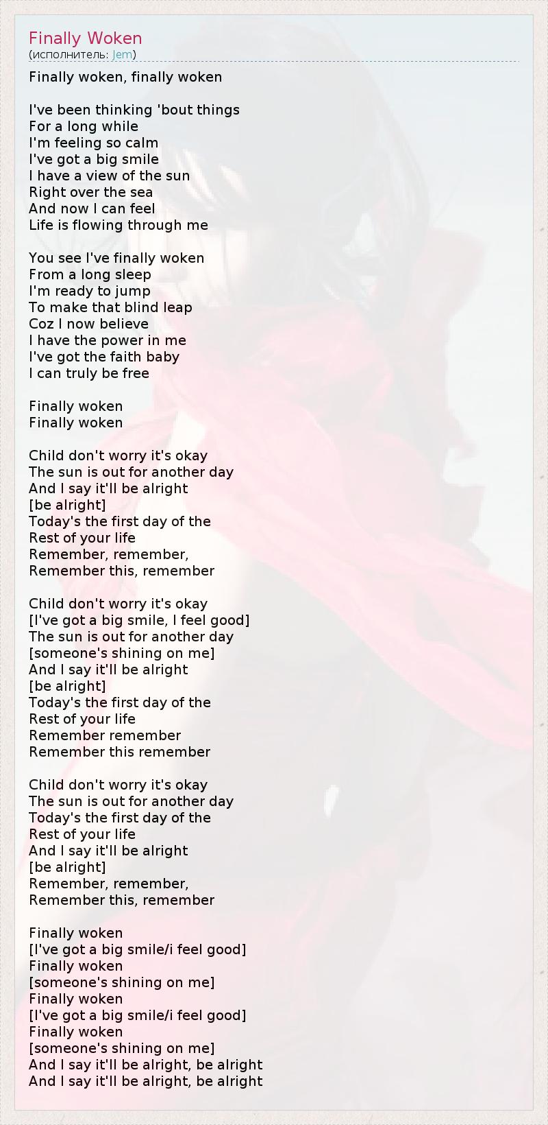 А как ты думаешь, о чем песня "Finally Woken" ?