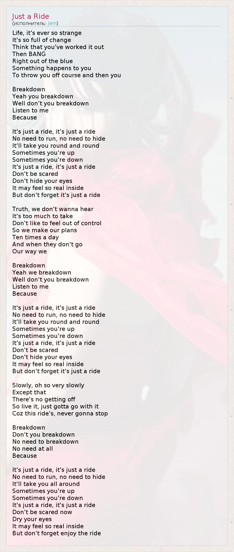 А как ты думаешь, о чем песня "Just a Ride" ?