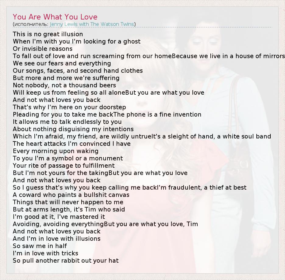 А как ты думаешь, о чем песня "You Are What You Love" ?