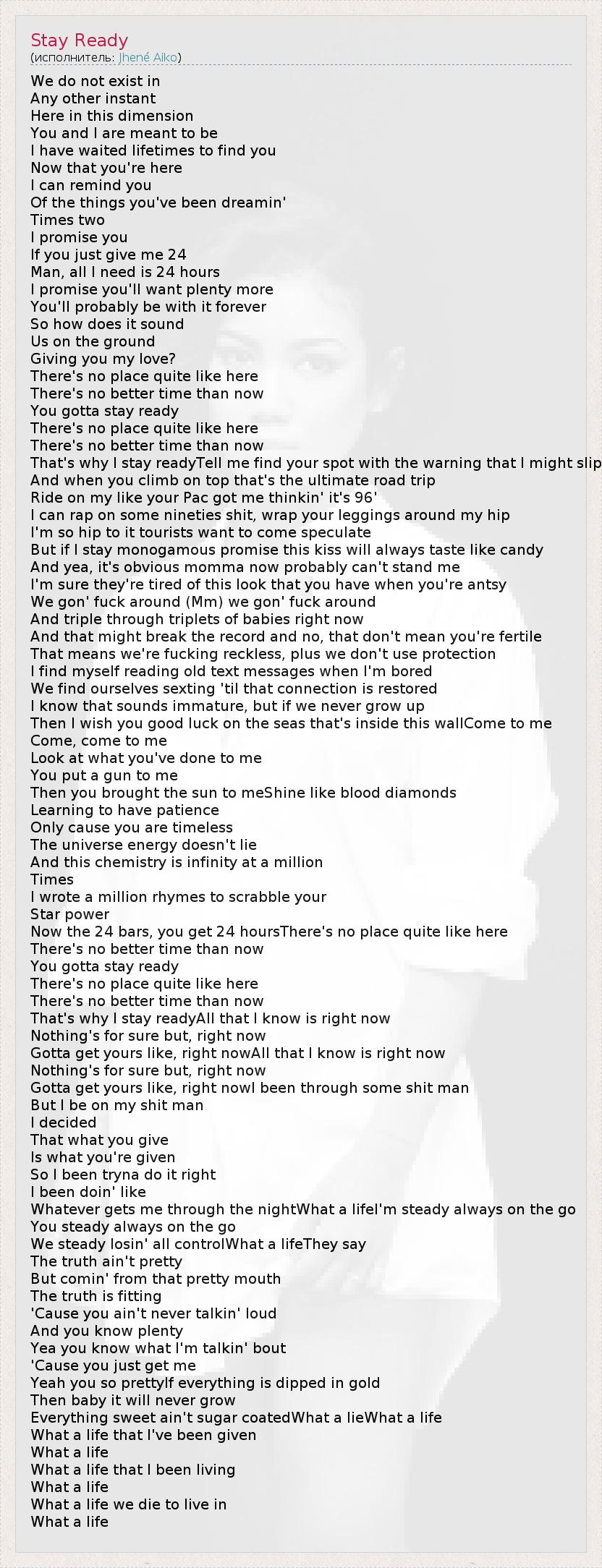 А как ты думаешь, о чем песня "Stay Ready" ?