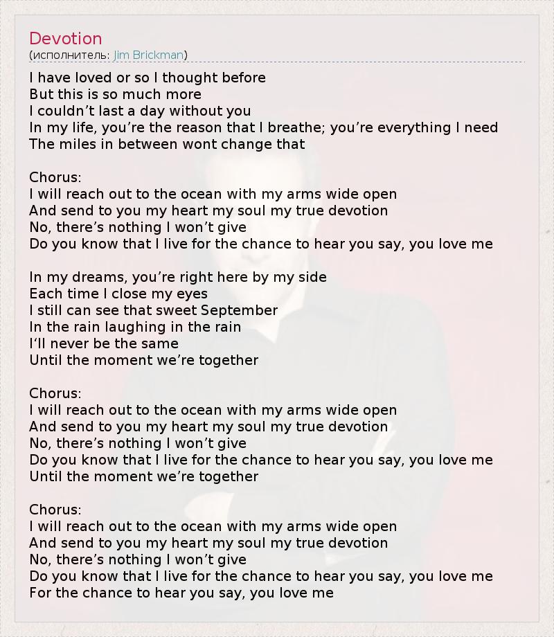 А как ты думаешь, о чем песня "Devotion" ?