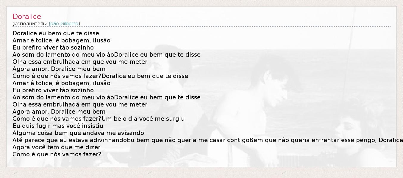 Até parece que eu estava adivinhandoEu bem que não queria me casar contigoBem que não queria enfrentar esse perigo, Doralice