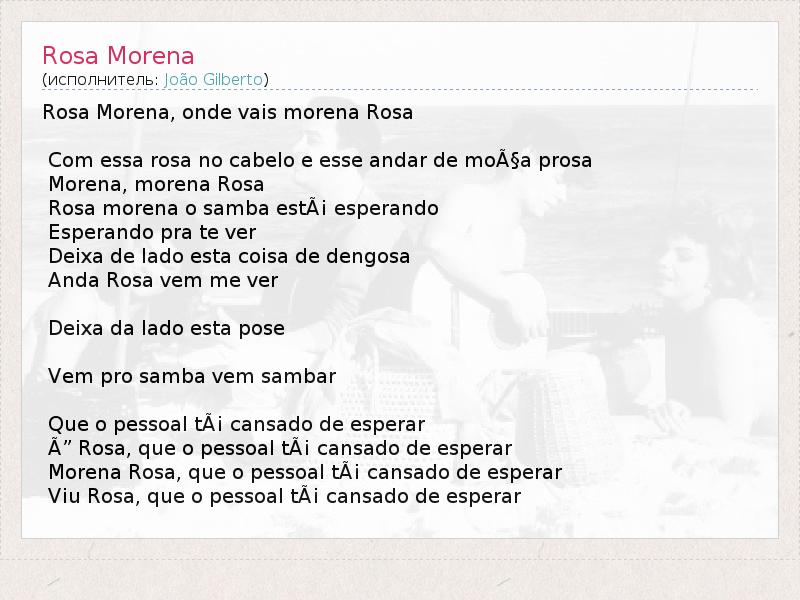 А как ты думаешь, о чем песня "Rosa Morena" ?