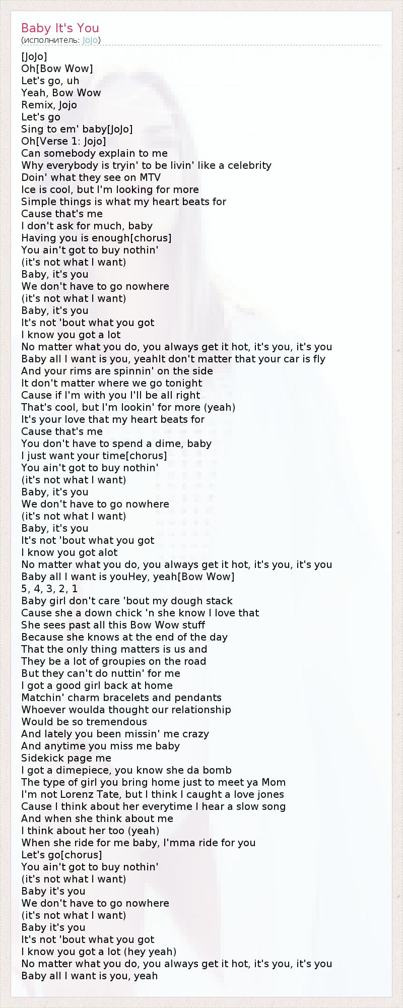 А как ты думаешь, о чем песня "Baby It's You" ?