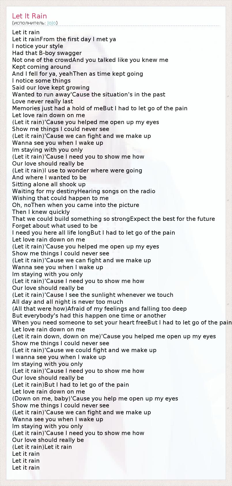 А как ты думаешь, о чем песня "Let It Rain" ?
