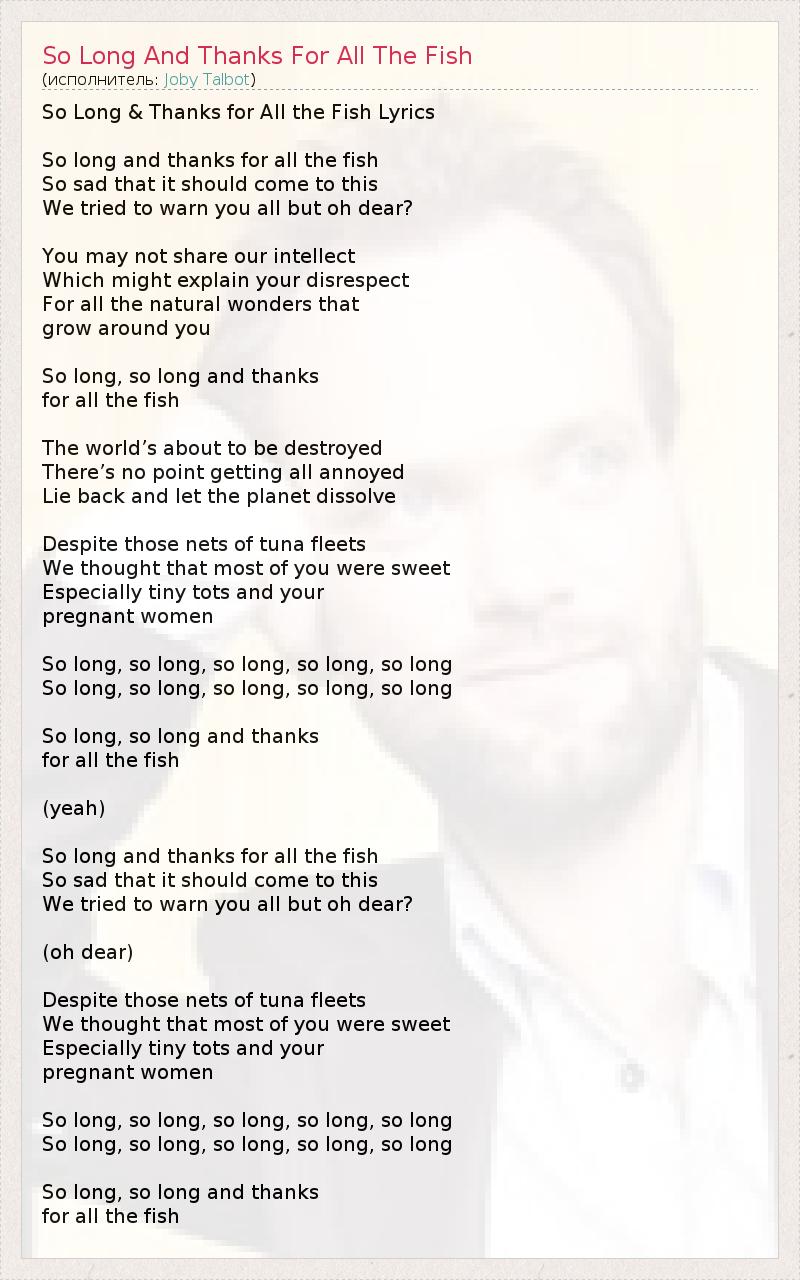 А как ты думаешь, о чем песня "So Long And Thanks For All The Fish" ?