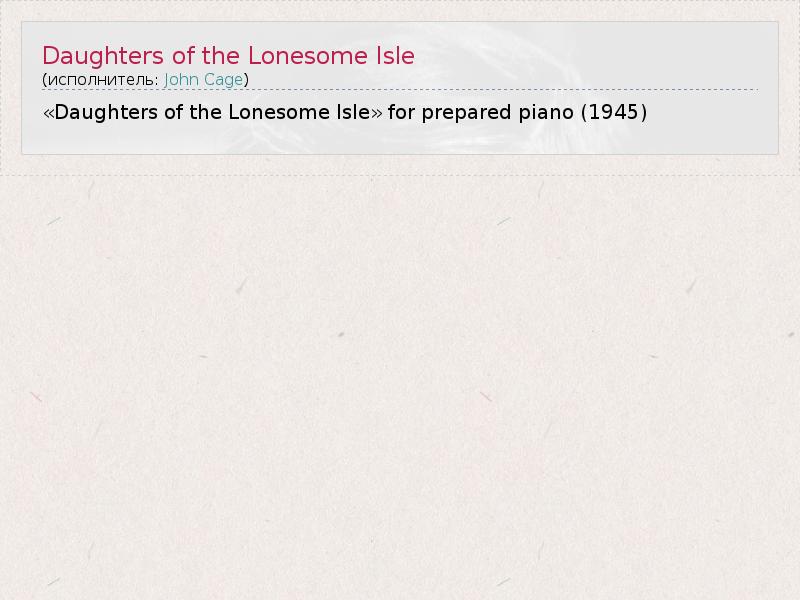 ГлавнаяИсполнителиJohn CageDaughters of the Lonesome Isle