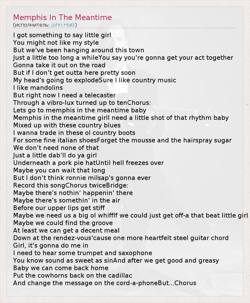 А как ты думаешь, о чем песня "Memphis In The Meantime" ?