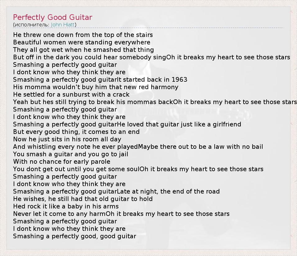 А как ты думаешь, о чем песня "Perfectly Good Guitar" ?
