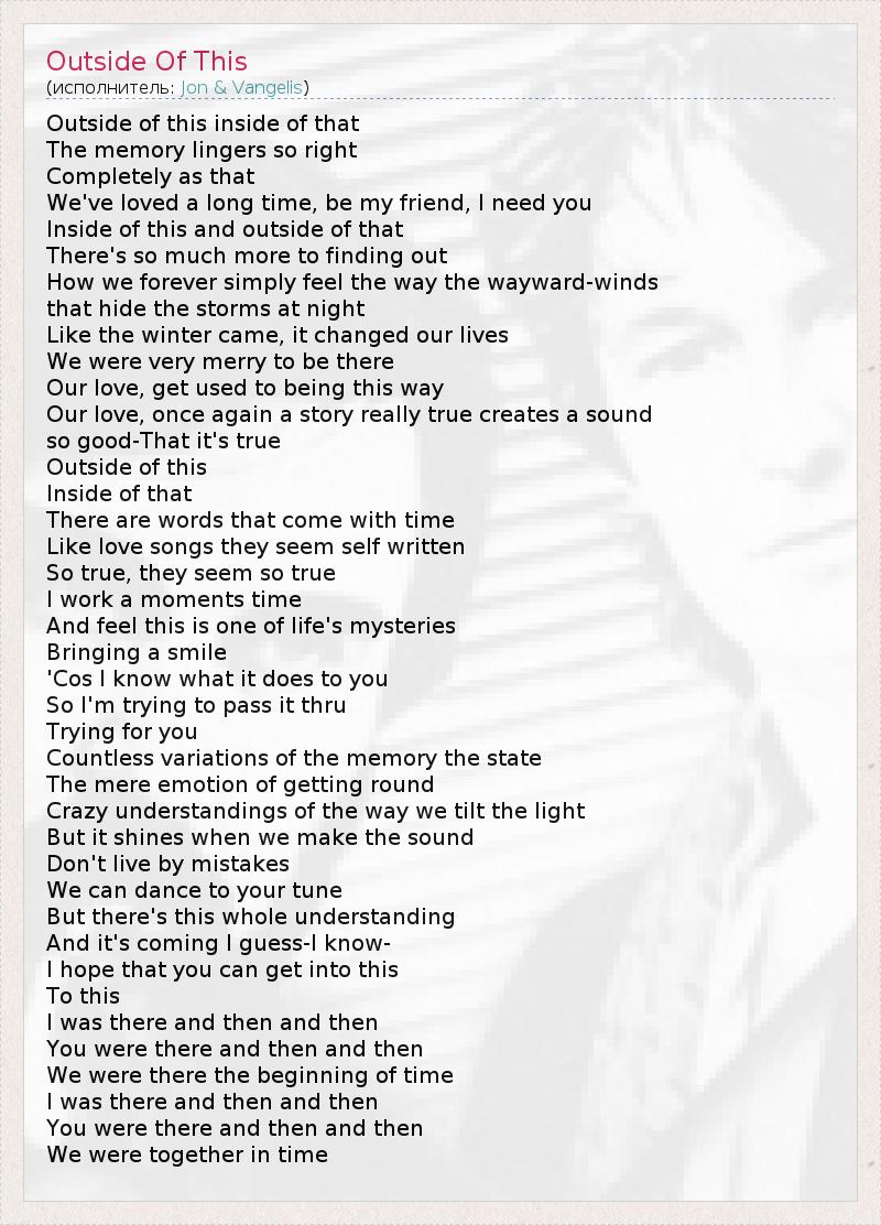 А как ты думаешь, о чем песня "Outside Of This" ?