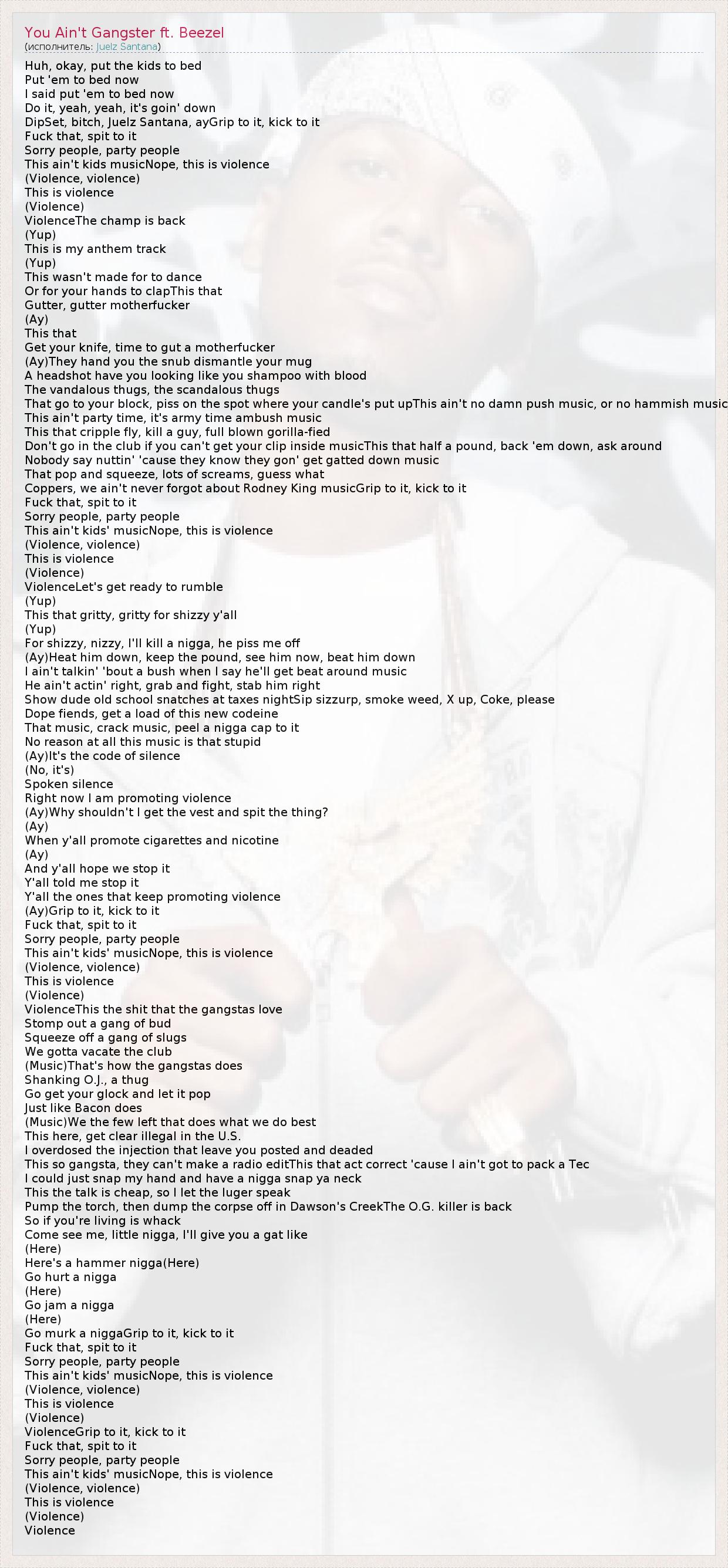 ГлавнаяИсполнителиJuelz SantanaYou Ain't Gangster ft. Beezel