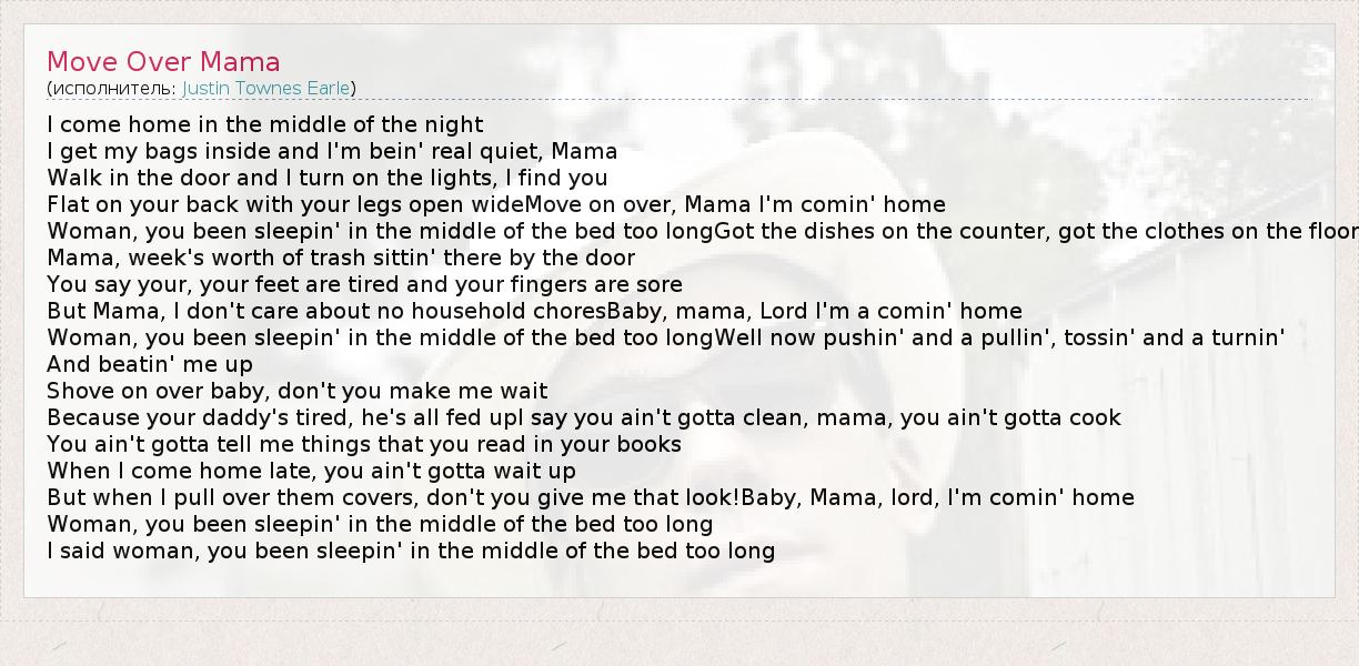 А как ты думаешь, о чем песня "Move Over Mama" ?
