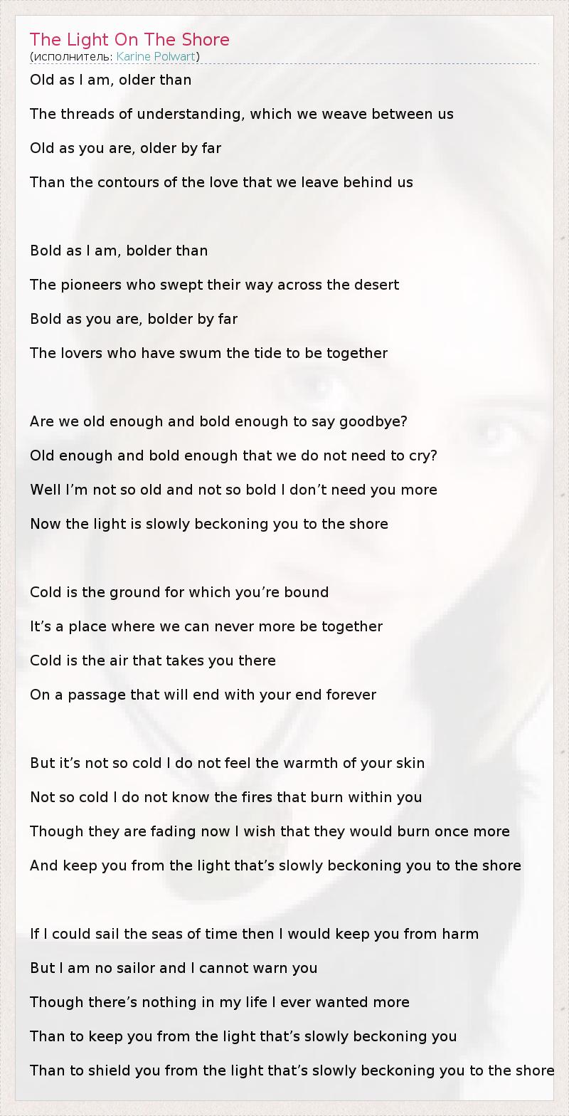 А как ты думаешь, о чем песня "The Light On The Shore" ?