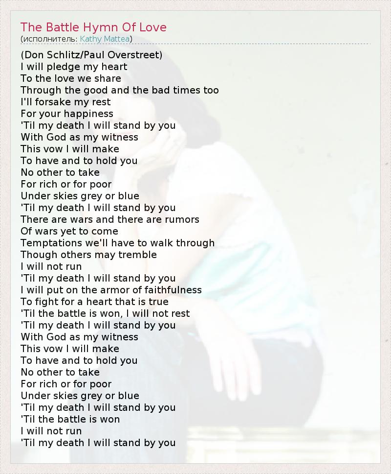 ГлавнаяИсполнителиKathy MatteaThe Battle Hymn Of Love