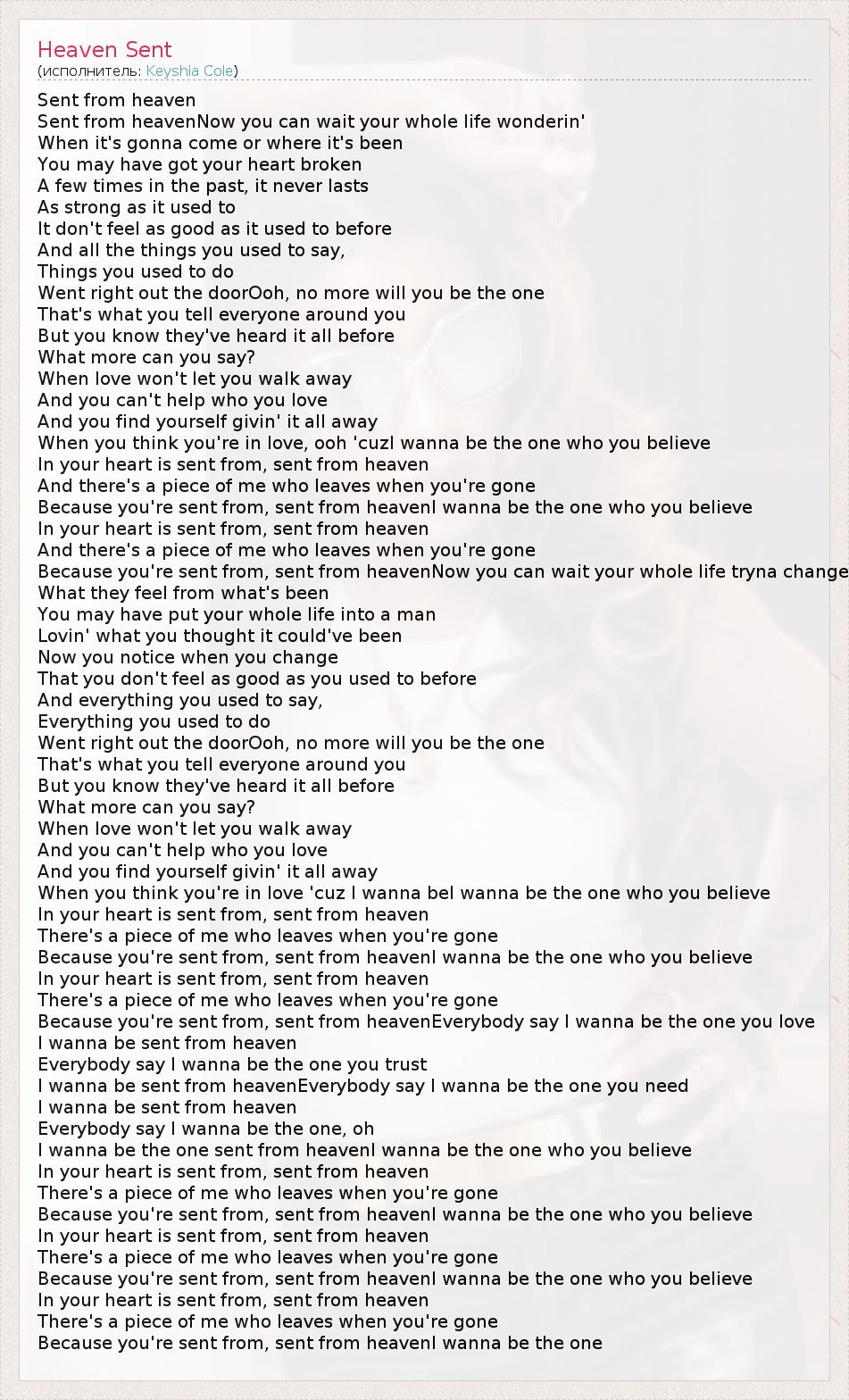 А как ты думаешь, о чем песня "Heaven Sent" ?